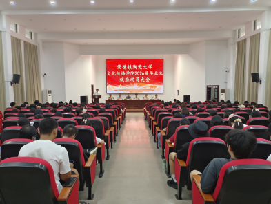 为全面部署毕业生工作,帮助学子们明晰未来方向,9月25日下午,文化传播学院2026届毕业生就业动员会暨征兵动员会在组阶02多功能报告厅顺利召开。学院党政领导、武装部征兵办公室负责人、各专业系主任代表、专业负责人、辅导员、毕业班班主任及2026届全体毕业生200余人参会。会议由就业专员李登鹏主持。