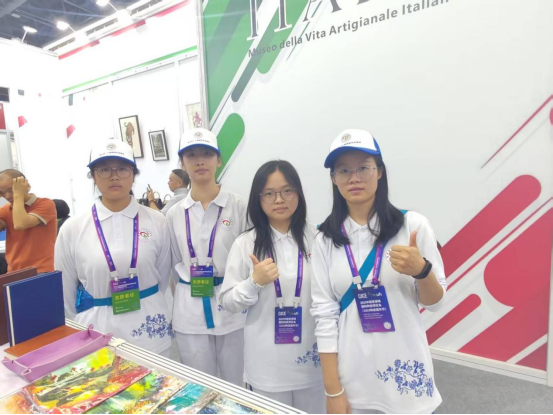 在负责人的组织下,我院志愿者负责国际展厅服务,他们敬业的精神与扎实的能力为外国展商和游客提供翻译支持,协助推进商业洽谈,为陶瓷贸易和跨文化交流搭建了桥梁。