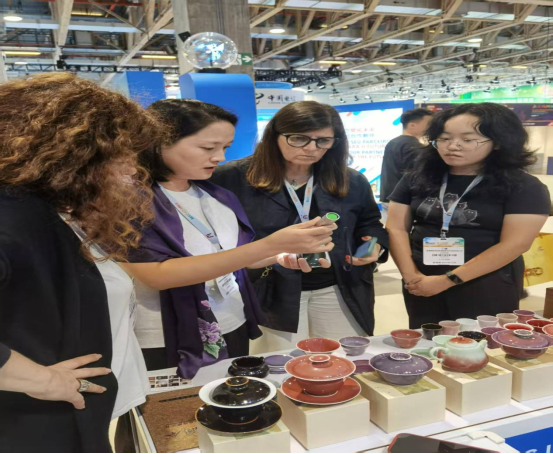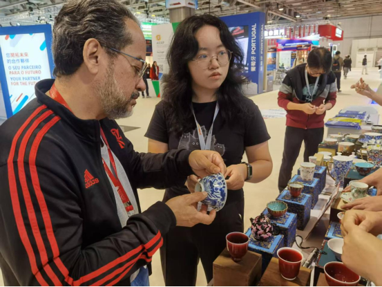 展会期间,丁媛同学充分发挥专业优势,凭借扎实的语言功底和对陶瓷文化的深刻理解,全程协助参展企业开展产品推介、商务洽谈等工作。她不仅高效促成现场交易额达数万元,还协助景德镇企业与来自葡萄牙、巴西、澳门及内地的众多优质客户建立了良好合作意向,为企业拓展海外市场架起了沟通桥梁。