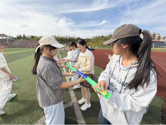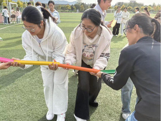本次活动精心设置了无敌风火轮、一圈到底、珠行万里三大协作挑战,将趣味竞技与心理成长有机融合。在活动过程中,团队节奏一致、紧密配合,在紧张又充满默契的配合中感受协作的力量,从无敌风火轮的稳步前行到一圈到底的无缝衔接,从珠行万里的精准传递到冲向终点的欢呼雀跃,每一个环节都彰显着同学们的青春活力与协作智慧。