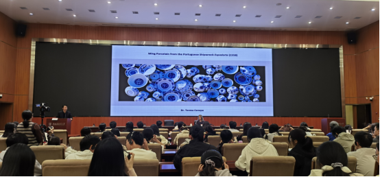 11月12日下午,我校文化传播学院客座教授、英国东方陶瓷学会(OCS)理事Teresa Canepa (中文名:甘淑美)应邀做客我校文传讲坛,在湘湖校区国际学术报告厅作了题为《葡萄牙埃斯帕达特沉船(1558年)出水的明代瓷器》的讲座,共有200余名师生到场聆听,讲座由文化传播学院院长兼国际合作与交流处处长侯铁军主持。