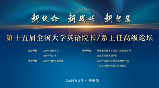 2026年3月14日下午,由上海外国语大学、江西师范大学共同主办,上海外语教育出版社承办,我院协办的第十五届全国大学英语院长系主任高级论坛--“文化传播与国际人才培养”分论坛在研究生艺术楼报告厅成功举行。院长侯铁军教授受邀作了题为“立足中华优秀文化、培养国际传播人才”的主旨报告。侯铁军围绕我校陶瓷文化国际传播人才培养体系的构建,分享了国际文化传播学院在人才培养、科学研究、社会服务、国际交流合作等方面的探索实践与阶段性成果。来自全国各地大学英语院长、系主任及骨干教师等近300人出席论坛。