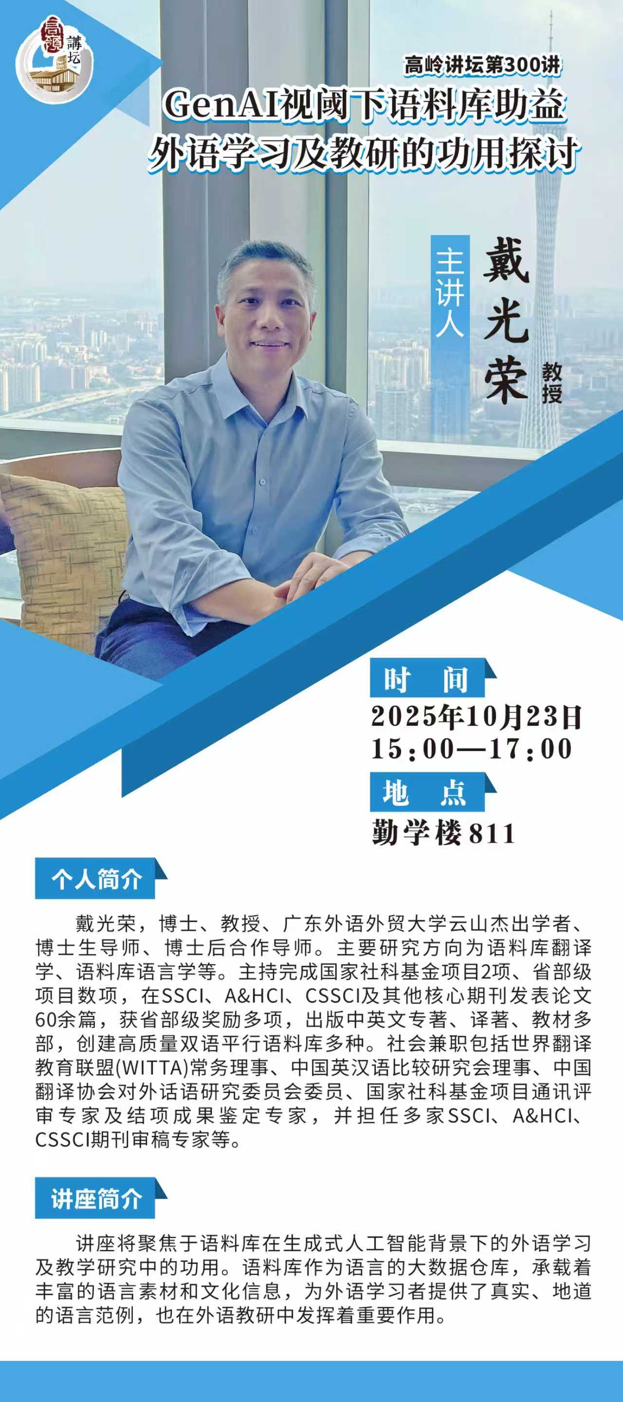 【高岭讲坛】GenAI视域下语料库助益外语学习及教研的功用探讨
